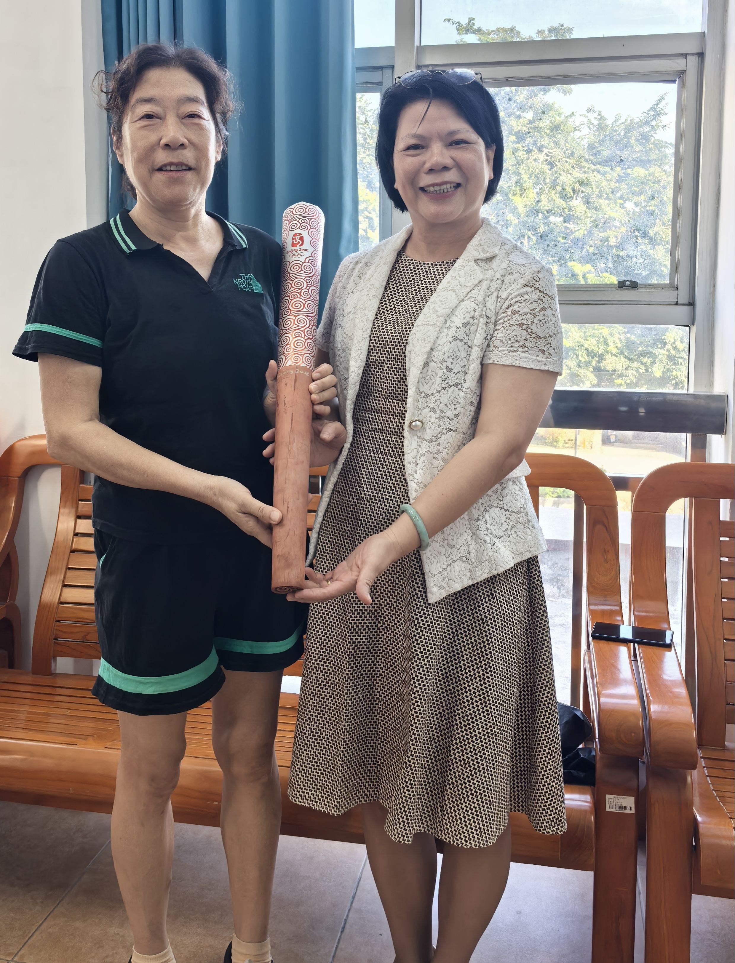 韩月香(左一)捐赠2008年北京奥运火炬传递惠州站的火炬
