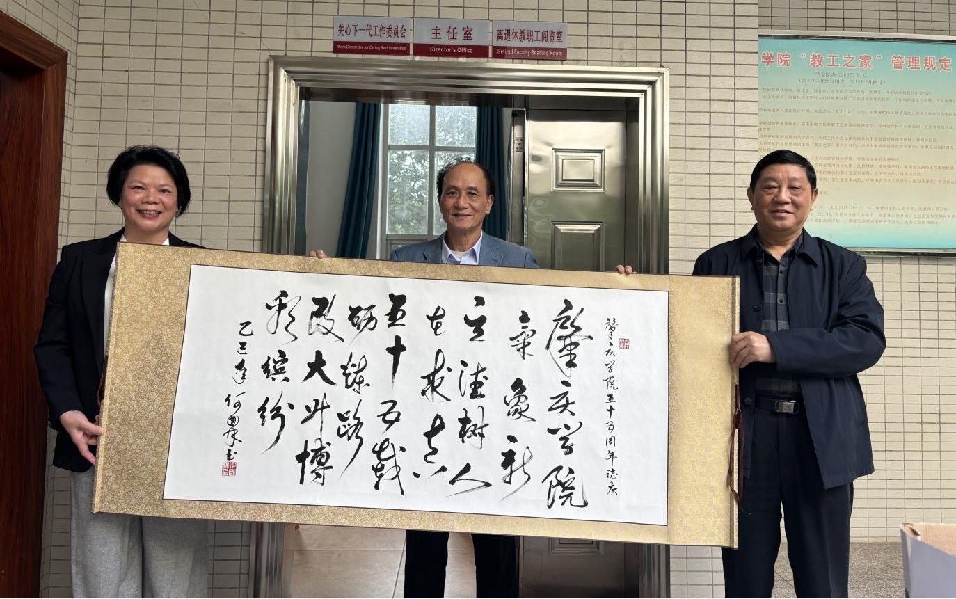 校史是最好的教科书,更是最好的精神养分。退休原校领导罗钦贤、胡宝坚,退休教师梁广坚、卢勇积极参与讲述校史活动,用亲身经历回顾学校从初创到发展壮大的艰辛历程,讲述那些扎根教育、潜心育人的动人故事,让师生们在聆听中感悟传承精神,汲取奋进力量。退休教师何国林挥毫泼墨,为校庆书写贺词,笔锋间满是对学校55华诞的喜悦之情和对学校未来的美好祝愿。