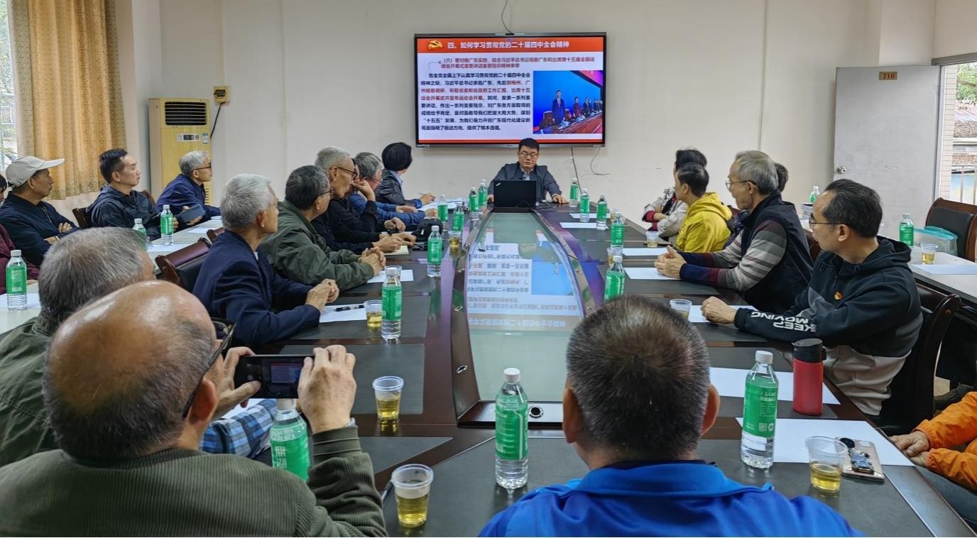 作专题宣讲,李德明老师围绕“党的二十届四中全会的重要内涵、“十四五”时期取得的历史性成就、“十五五”时期经济社会发展的宏伟蓝图、如何学习贯彻党的二十届四中全会精神”四个方面展开讲解引导大家完整准确领会把握全会的精神实质和核心要义,推动离退休党员掀起学习宣传贯彻党的二十届中全会精神的热潮。